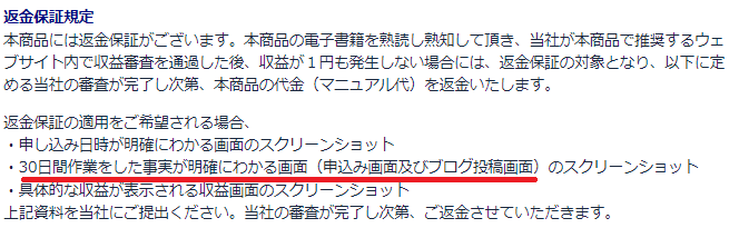 気を付けて欲しいのですが、高額なサポートプランに入った場合の返金では無いという事です。