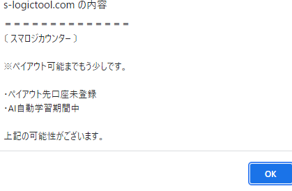 また、ペイアウトというボタンがありましたので押してみましたが、現在は利用できないようになっています。